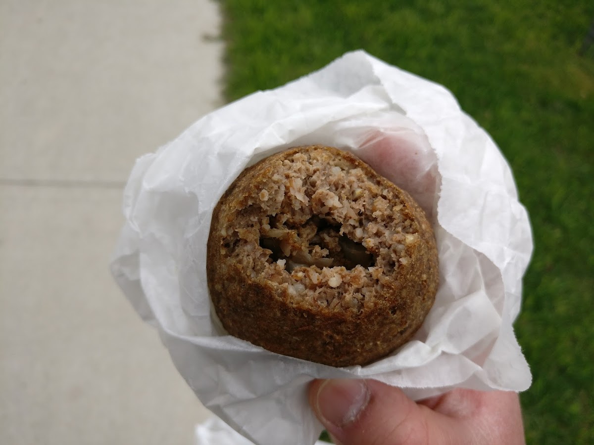 Simple ordering process. Order once you enter and they will write your order on the bag. After ordering you can browse and see what other grocery items or drinks you may want to pick up. Order is made fresh so meat is juicy and and not dried out. Once they are finished with your order you can pay and be on your way. A handful of patio tables outside or you can take your order to nearby park.